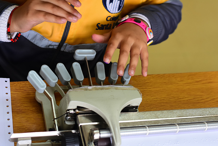 En ese sentido, Ivy Betancur, profesora de lenguaje del colegio Fundación Luz, explica la importancia de este sistema en el aprendizaje de personas ciegas y baja visión. "El braille en nuestros estudiantes es primordial, dado que es la puerta para la lectoescritura. Este es un sistema de registro de información y acercamiento a la lectura de toda índole. Por ello, es fundamental que se alfabeticen y dominen eficientemente este mecanismo. Gracias a esta herramienta podrán registrar información de las clases en todas las asignaturas, escribir creativamente, conocer el mundo, leer de otros autores, registrar ecuaciones matemáticas y partituras musicales, por lo tanto, les da autonomía e independencia en sus vidas".
