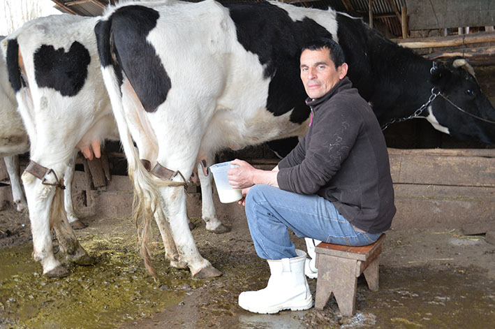 Hugo Carreño, nos cuenta que su trabajo lo realiza los 365 días del año, y comienza diariamente a partir de las 06:00 am arriando sus vacas, preparando la maquinaria y alimentación necesaria que dará a sus animales para posteriormente comenzar con la extracción de la leche de las 16 vacas que posee activamente.
