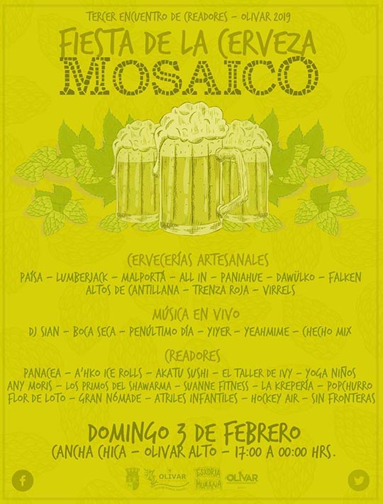 Productores de cerveza artesanal, expositores gastronómicos y emprendedores locales, son la apuesta de la Fiesta de la Cerveza de Olivar 2019, panorama que reunirá a bandas locales y regionales, quienes se darán cita este domingo 3 de febrero en el centro de Olivar.