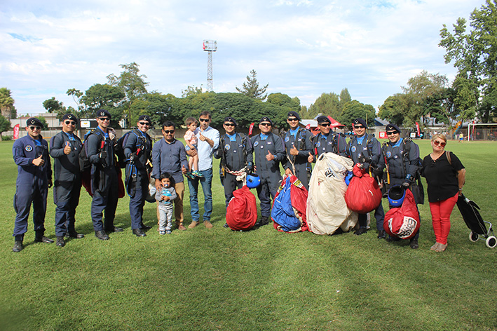 La jornada comenzó el día sábado con la llegada de los paracaidistas que fueron recibidos por la máxima autoridad comunal con una recepción en una casona de Placilla facilitada por el gerente de la Empresa Greenvic Jorge Salazar Urzúa. En este lugar, la agrupación de la Fach entregó al alcalde Tulio Contreras un presente en agradecimiento por la hospitalidad recibida en la comuna.