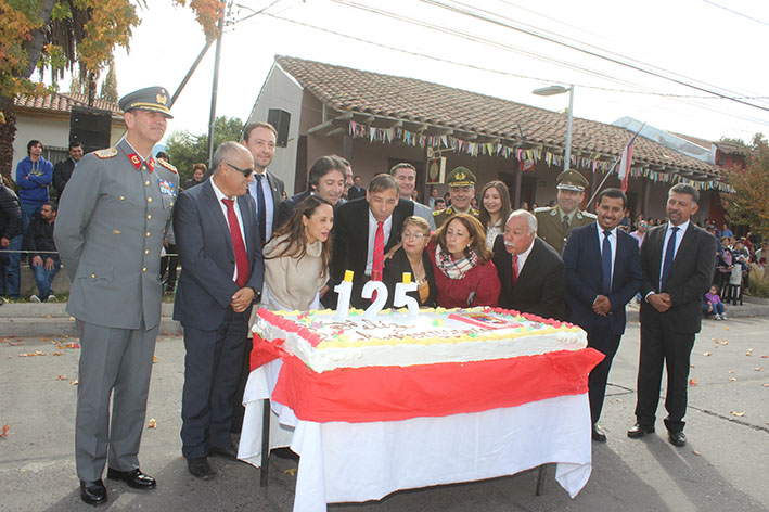 El alcalde junto al concejo municipal e invitados especiales soplaron las velitas de una gigantesca torta que fue compartida por todos los asistentes al desfile. Además, dentro de la ceremonia tres personas fueron homenajeadas, primero a un ex funcionario municipal que trabajó en el año 1950 Raúl Donoso Fredes, al carabinero de esa época Remberto Benavides Piña, y a un ex jefe de retén hoy ya fallecido./