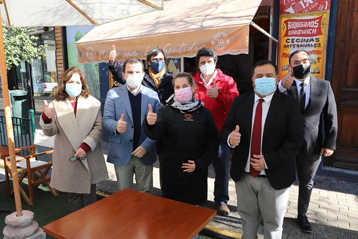 Para iniciar este proceso en la Región de O'Higgins, el Intendente Ricardo Guzmán junto al Seremi de Economía, Félix Ortiz; la Seremi de la Mujer y Equidad de Género, Marcia Palma; y el asesor de Hacienda, Jorge Palma; además de los directores de SERCOTEC y CORFO, Sebastián Osorio y Emiliano Orueta, respectivamente; llegaron hasta el local "Emporio 18", en el centro de Rancagua, para junto a su dueña dar inicio al proceso de inscripción del bono de alivio por $1 millón para micro y pequeñas empresas del país.