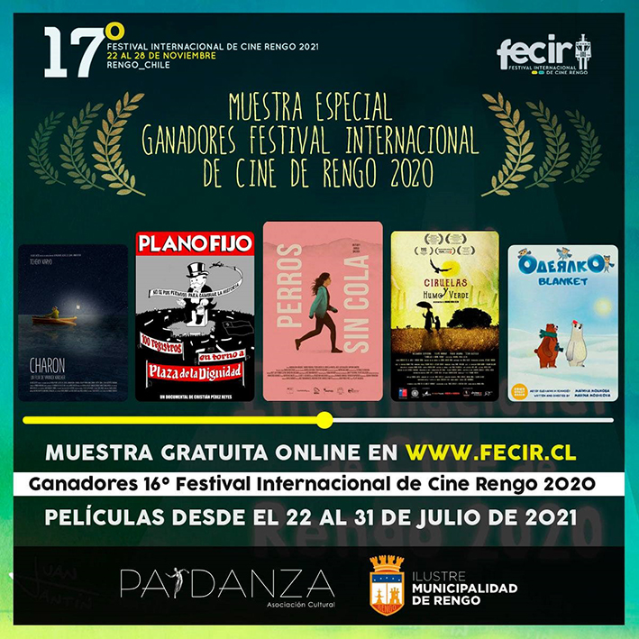 La 17º edición del Festival Internacional de Cine de Rengo 2021 sigue entregando buenas noticias. En esta oportunidad, presenta la muestra especial de las películas ganadoras de la pasada versión 2020. Estas obras se encontrarán disponibles del 22 al 31 de julio en la nueva plataforma en www.fecir.cl. Quienes quieran apreciar el contenido sólo deben registrarse como usuario y se podrá acceder a esta selección de películas y a otros contenidos exclusivos para usuarios FECIR, que durante cada mes tendrá cine de calidad para disfrutar desde tu hogar.