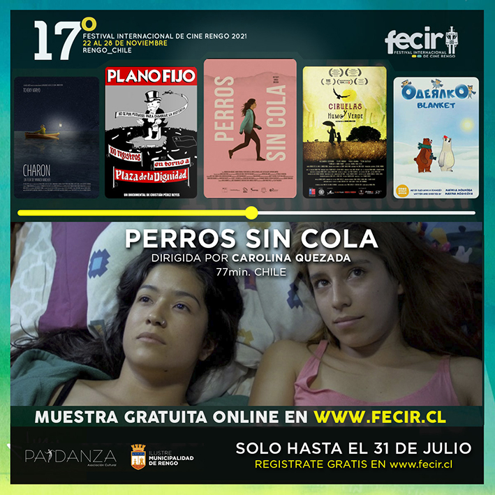 Hasta mañana sábado 31 de julio está disponible en la página web del 17º Festival Internacional de Cine Rengo 2021, www.fecir.cl, la muestra gratuita de las películas ganadoras del año 2020. Entre ellas, de Chile “Perros sin cola” de Carolina Quezada, “Plano Fijo” de Cristian Pérez Reyes, “Ciruelas y Humo verde” de Amanda Mora Klein, desde Rusia “La Manta de Marina Moshkova y de Francia Charon; de Yannick Karcher.