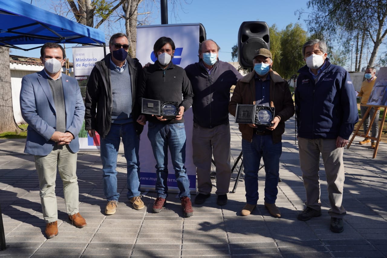 Durante la jornada también se distinguió a un grupo de agricultores que se han destacado por un uso eficiente del agua en medio de la escasez hídrica que afecta a gran parte del territorio nacional y a dos jóvenes emprendedores de la región: Alfredo Carrasco (25), de Quinta de Tilcoco, creador del innovador proyecto inclusivo Farm Hability, y Camila Zavala (28), de San Fernando, productora de hortalizas con una exitosa gestión como presidenta de la Cooperativa Convento Viejo.