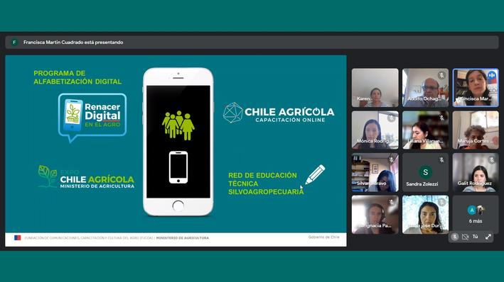 La instancia, realizada en el contexto del trabajo de la Escuela de Capacitación Online Chile Agrícola (www.chileagricola.cl), lanzada en mayo de 2020 por la fundación ligada al Ministerio de Agricultura, contó con la participación de representantes y contrapartes técnicas de servicios del Minagri, entidades vinculadas al sector, universidades y organismos internacionales, quienes forman parte de las 65 instituciones colaboradoras de esta iniciativa de capacitación gratuita, y permitió conocer el balance general del funcionamiento de la plataforma en sus casi 2 años de funcionamiento, junto con delinear los principales desafíos de la iniciativa para este año y presentar nuevas herramientas que estarán disponibles próximamente en el sitio web.