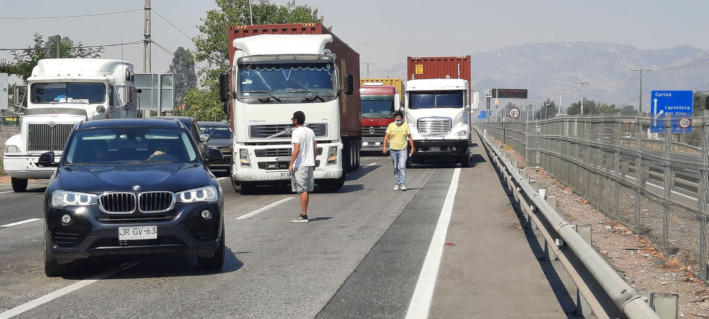 A la altura de San Fernando en el sector de Nestlé y en el cruce de Tinguiririca varios camiones cortaron la ruta 5 Sur en horas de la noche de este viernes, creando un taco kilométrico que dura hasta estos momentos, especialmente en la dirección de norte a sur complicando el tránsito normal.