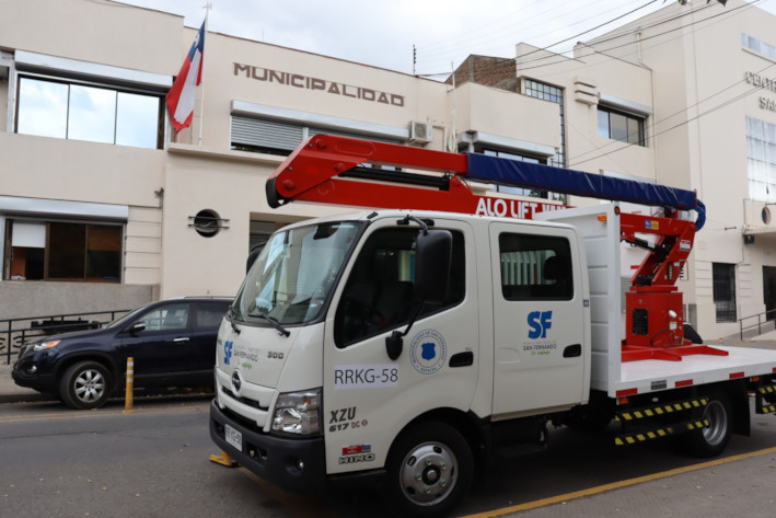 Durante la tarde de este miércoles, el alcalde de San Fernando Pablo Silva Pérez encabezó la ceremonia de inauguración de un nuevo camión "alza hombre", el cual fue adquirido por el municipio recientemente con el objeto de fortalecer el cambio y mantención del alumbrado público de la ciudad.