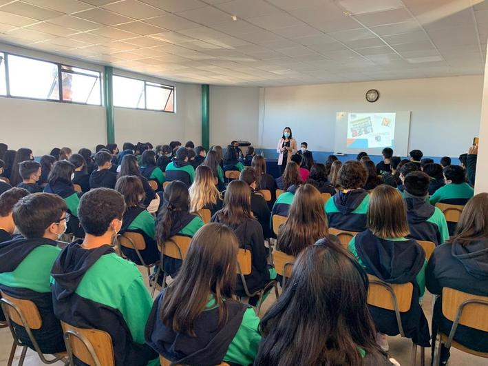 La charla abordó el ciberacoso y bullying y fue dirigida a estudiantes de octavo básico a cuarto medio del Colegio Santa Cruz de Unco, con el objetivo de concientizar y dar a conocer los efectos y consecuencias de estas malas prácticas en alumnos, profesores y asistentes de la educación.