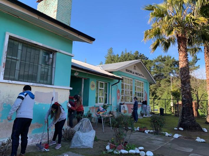 Los alumnos, pertenecientes a distintas carreras, ejecutaron mejoras en la escuela del sector, la cual quedó completamente renovada en su parte exterior, así como el entorno del establecimiento.
