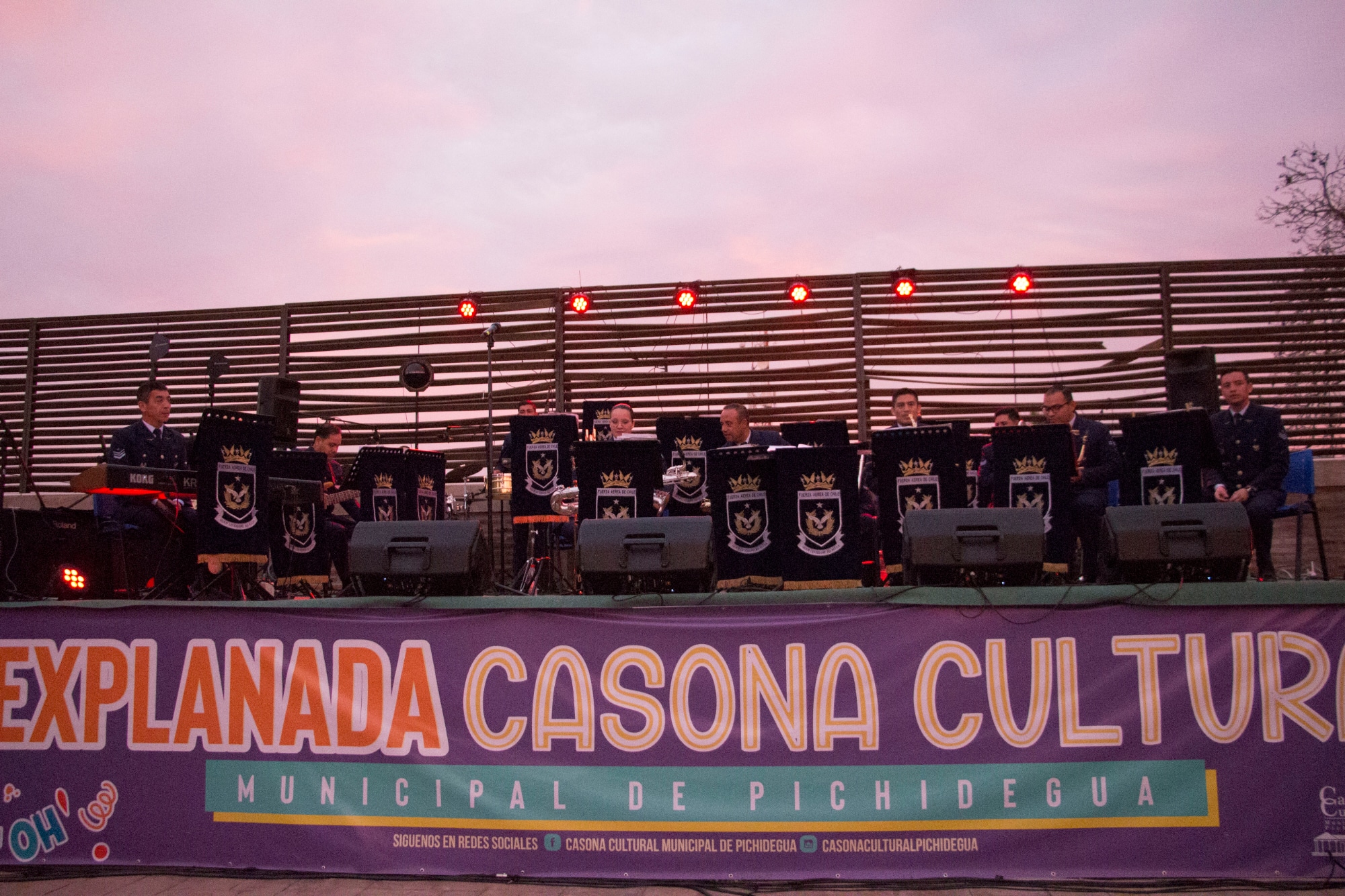 Cientos de vecinos llegaron hasta la Explanada de la Casona Cultural de Pichidegua para presenciar, disfrutar y ser parte de una noche mágica con la Big Band de la Fuerza Aérea de Chile (FACH).