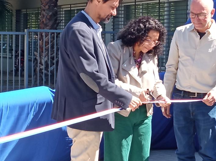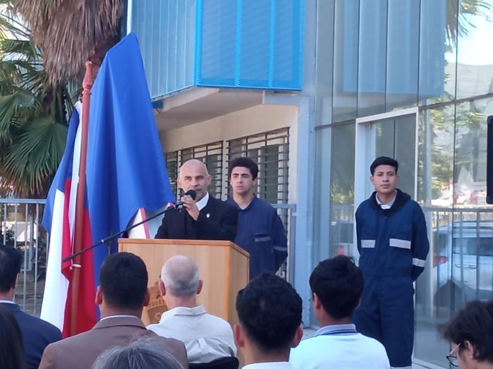 Carlos Moreno Díaz, director del Liceo Industrial en representación de su comunidad educativa, recibió la obra junto al artista autor y la representante del Ministerio de Obras Públicas (MOP) regional Yasna Cárdenas. Procedieron al corte de la cinta, dando por entregada y recibida oficialmente esta escultura para la comunidad del Liceo Industrial y San Fernando en general.