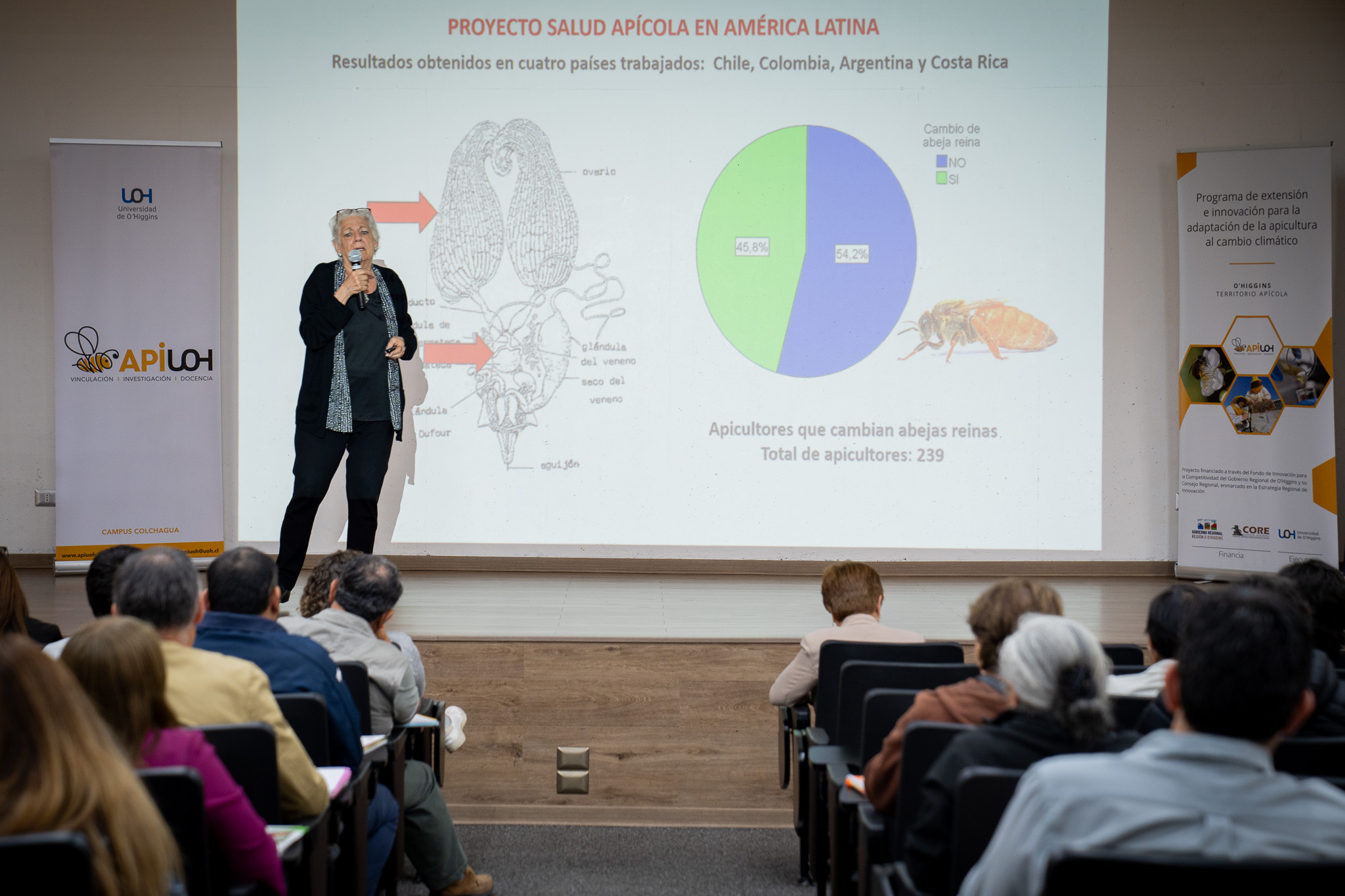Apicultores de toda la región participaron en el Seminario Internacional “Cambio Climático en Apicultura 2024”, organizado por APIUOH de la Universidad de O’Higgins (UOH) en su Campus Colchagua. La actividad, enmarcada en el proyecto FIC “Programa de Extensión e Innovación para la Adaptación de la Apicultura al Cambio Climático”, financiado por el Gobierno Regional de O’Higgins y ejecutado por la UOH, reunió a destacados expertos nacionales e internacionales y abordó la importancia de profesionalizar el rubro, cómo afecta el cambio climático a la apicultura y la implementación de la nueva Ley Apícola 21.489.
