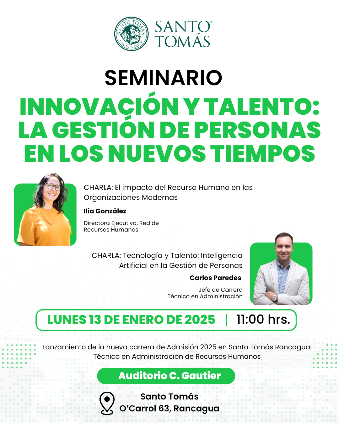 Además, el seminario marcará el lanzamiento oficial de la nueva carrera de Técnico en Administración de Recursos Humanos para la admisión 2025, destacando el compromiso de Santo Tomás con la formación de profesionales preparados para los desafíos del futuro.