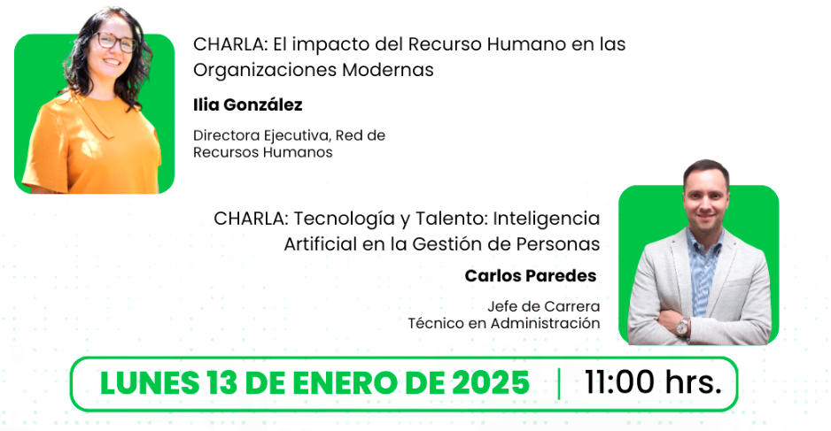 Carlos Paredes, Jefe de Carrera de Técnico en Administración, hablará sobre "Tecnología y Talento: Inteligencia Artificial en la Gestión de Personas", explorando cómo la IA está revolucionando las prácticas de recursos humanos.