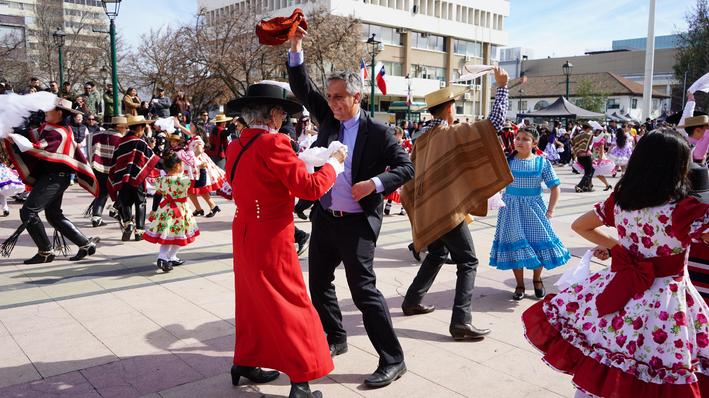 Con un acto lleno de colorido y con las diversas tradiciones que representan lo mejor de nuestro país, la Plaza de Los Héroes fue escenario del inicio oficial del Mes de la Patria en Rancagua. La jornada reunió a cientos de estudiantes de distintos colegios de la comuna, quienes, junto al grupo folclórico Paihuen, dieron vida a una presentación marcada por la música, la danza y el espíritu de septiembre.
