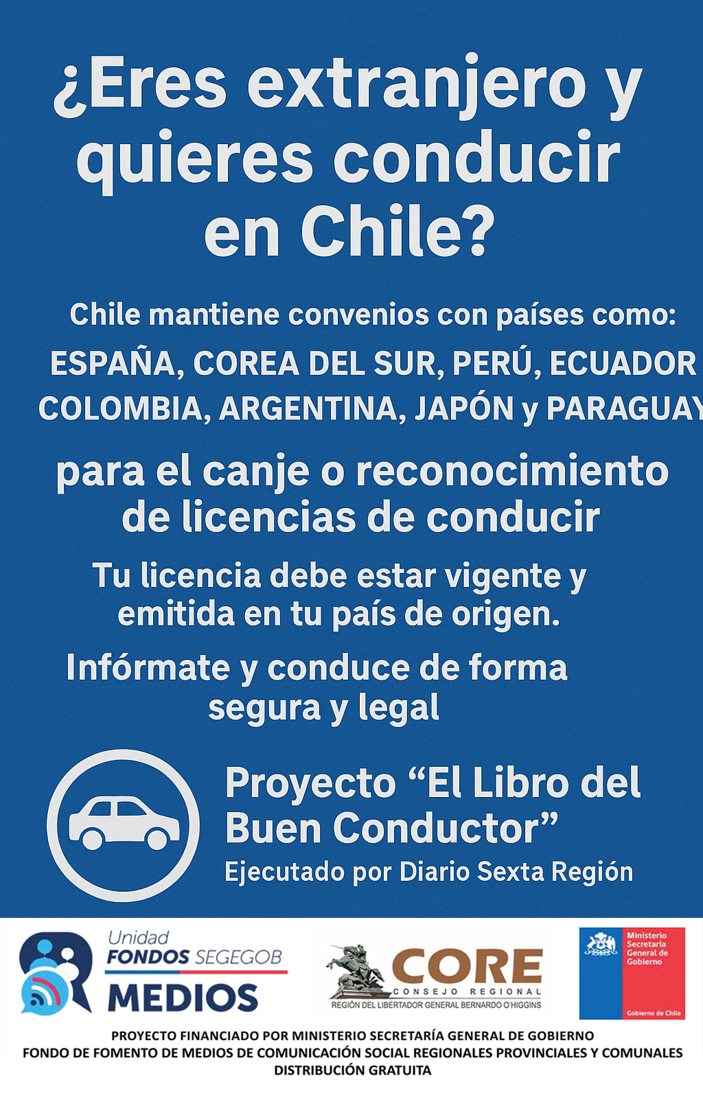 Chile mantiene acuerdos de canje o reconocimiento de licencias con España, Corea del Sur, Perú, Ecuador, Colombia, Argentina, Japón y Paraguay.