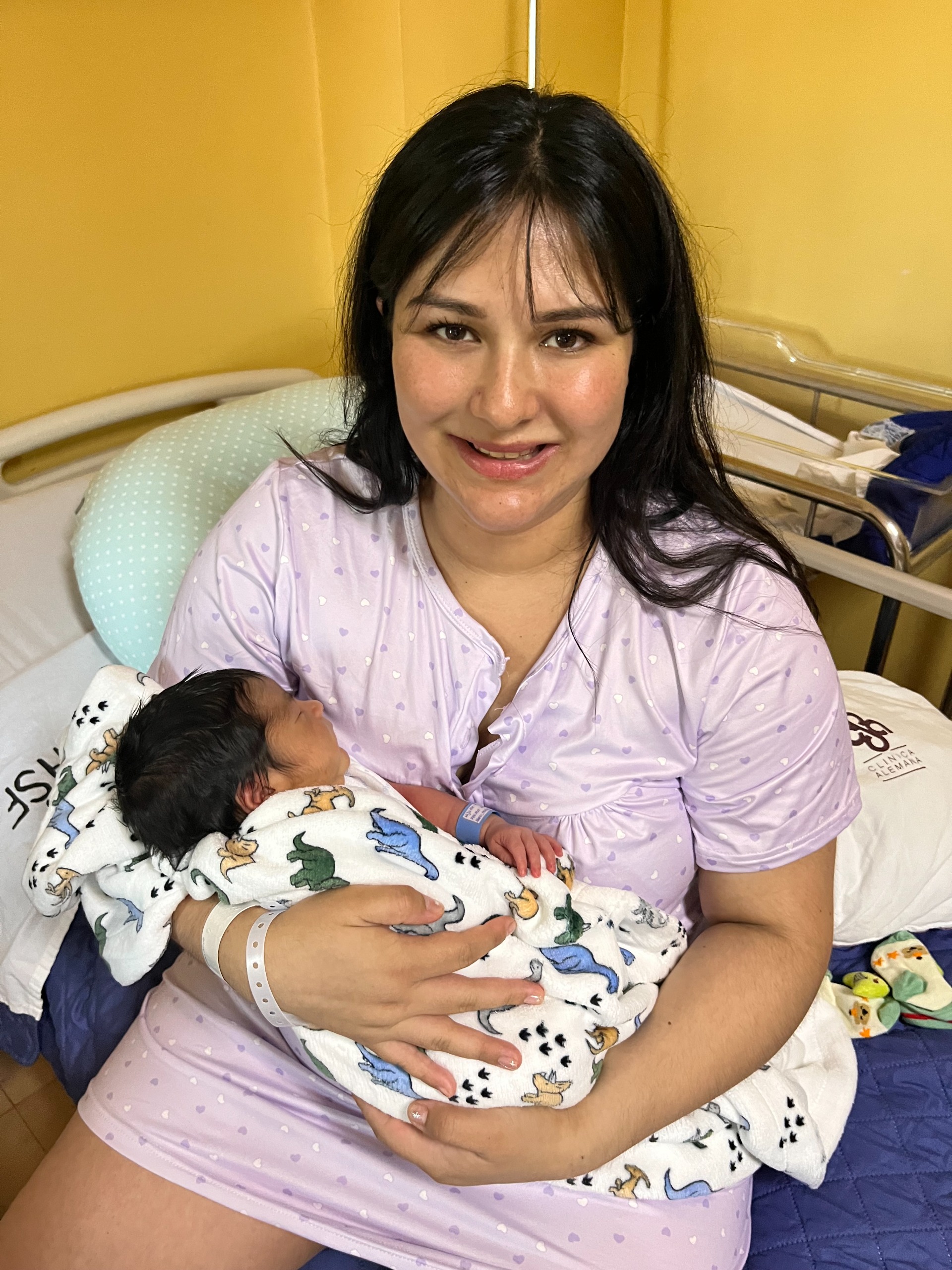 “Franco es mi primer hijo. Antes del nacimiento tuve mis controles regulares en el Policlínico de Alto Riesgo Obstétrico (ARO) del hospital. Ese 31 de diciembre tuve una leve complicación durante el día; cuando vine al hospital acompañada por mi pareja, quien además trabaja aquí, me dijeron que había roto membrana y que estaba pronto a nacer. Me hospitalizaron inmediatamente y, a las 1:27 del primero de enero, Franco llegó a mis brazos. Fue todo muy emocionante”, señaló Aylén.