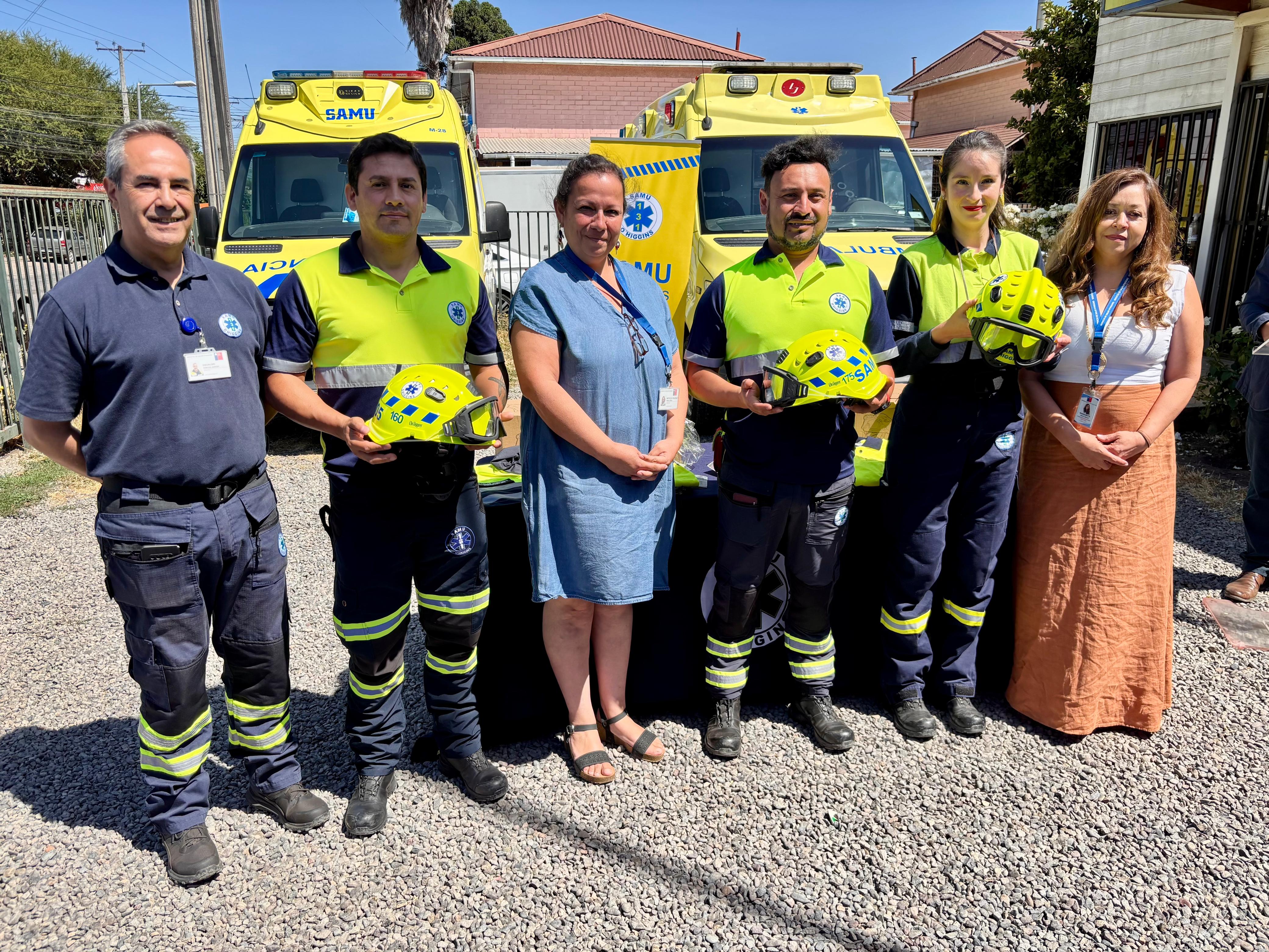 Con el objetivo de reforzar la seguridad laboral, el desempeño operativo y la formación continua del personal de emergencia, el Servicio de Salud O’Higgins realizó la entrega de ropa de trabajo y cascos de seguridad a funcionarios del SAMU O’Higgins.