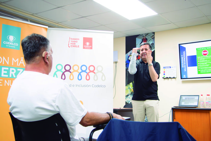 Hace unas semanas, Codelco División El Teniente vivió un importante hito en materia de diversidad e inclusión. Se trató del primer Curso Inclusivo de Inducción en Seguridad y Salud Ocupacional, una jornada especialmente adaptada con interpretación en lengua de señas, que se enmarca en la política corporativa de Diversidad e Inclusión y en el cumplimiento de la Ley de Inclusión Laboral.