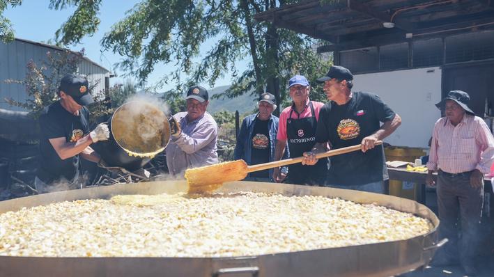 En esta preparación trabajaron alrededor de 35 cocineros, quienes iniciaron sus labores desde muy temprano y bajo una coordinación definida, encargándose de cocinar 1500 choclos, 1000 cebollas, 500 kilos de carne de pollo y de vacuno, 400 huevos y diversos condimentos, que otorgan un sabor único e inigualable al público asistente.