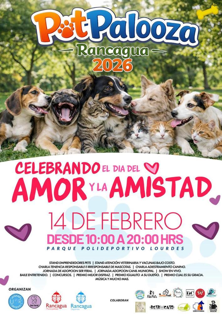 Con el objetivo de promover la tenencia responsable de mascotas, el bienestar animal y la convivencia familiar, Agrupación Cultural Social y Deportiva “Unidos por Rancagua” y Ser Feral, junto al municipio local, invitan a la comunidad a participar en PetPalooza 2026, evento que se realizará este sábado 14 de febrero, en el marco de la celebración del Día del Amor y la Amistad.