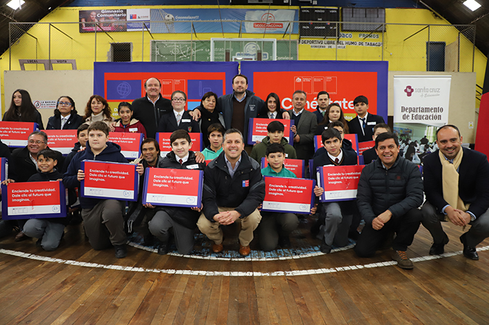 En la ceremonia en el Gimnasio Municipal de Santa Cruz, 113 alumnos pertenecen a colegios particulares subvencionados, y los otros 259 son de establecimientos municipales, todos quienes además, recibieron un wifi con internet por 12 meses, una mochila para el transporte del equipo y una pulsera inteligente, que monitorean la actividad física. Todos los computadores cuentan con 81 recursos instalados y con acceso directo desde el equipo para que puedan explorar, ejercitar y complementar lo aprendido en clases.