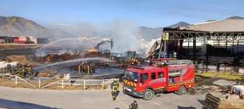 Más de 100 voluntarios de diferentes compañías de bomberos de la Región de O´Higgins trabajaron en el combate del gigantesco incendio estructural que la tarde del lunes afectó a la planta procesadora de frutas y verduras Verfrut del sector Santa Inés en la comuna de Las Cabras.