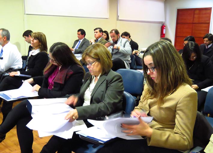 La charla -realizada en el salón auditorio del tribunal de alzada- fue dictada por los académicos Winston Alburquenque, docente de la facultad de Derecho de la Pontificia Universidad Católica de Chile; Alejandro Canut de Bon, abogado profesor de la Escuela de Derecho de la Universidad Finis Terrae; y María Luisa Baltra, académica de la Universidad Autónoma de Chile.