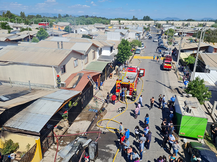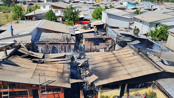 El fuego se inició pasadas las 15:30 horas y consumió totalmente cinco viviendas de calle Los Estanques dejando otros dos inmuebles con daños en sus techumbres ubicados en calle Finlandia de la villa Don Horacio de esta ciudad.