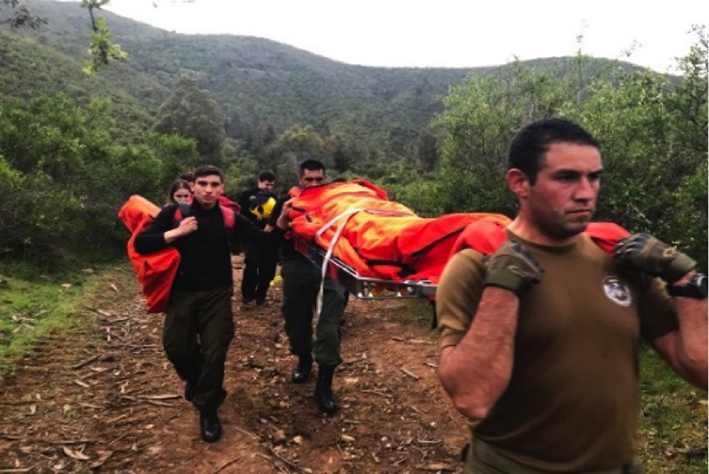 El grupo de carabineros a cargo del capitán Claudio Vera, acompañado del suboficial Juan Machuca, y los cabo primero David Monarez y Víctor Murgas, realizaron el ascenso al sector, procediendo a tomar contacto con la persona lesionada.
