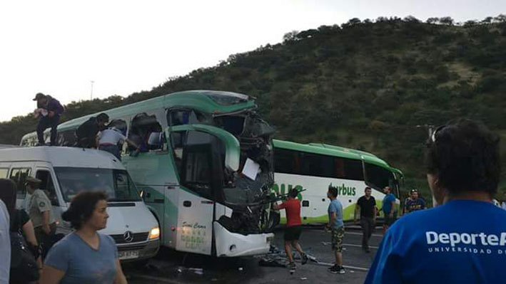 Se trata de dos buses, uno de la empresa Tur Bus quien se habría detenido por una falla mecánica en el kilómetro 120 de la Ruta 5 Sur y la máquina de la empresa Nilahue.