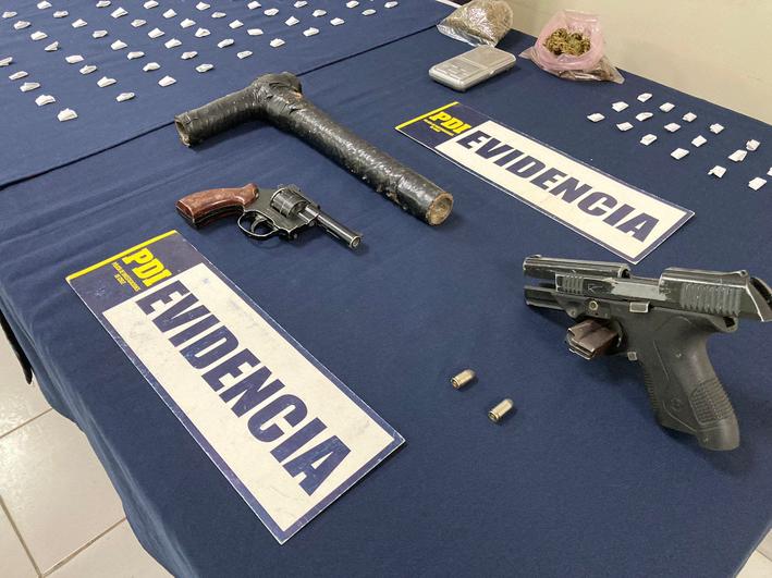 De igual manera, la PDI señaló que durante el operativo policial también fueron incautados un revólver calibre .314, una pistola 9 milímetros y un arma de fabricación artesanal.