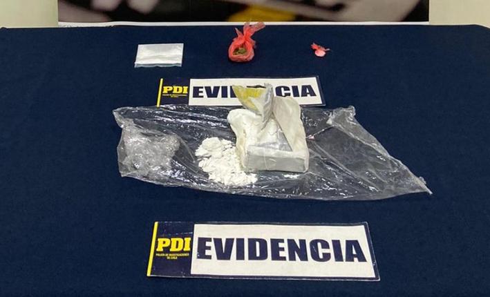 Durante la fiscalización, los detectives encontraron 6 gramos de cannabis, 14 gramos de ketamina y 549 gramos de clorhidrato de cocaína, droga avaluada en más de 11 millones de pesos.