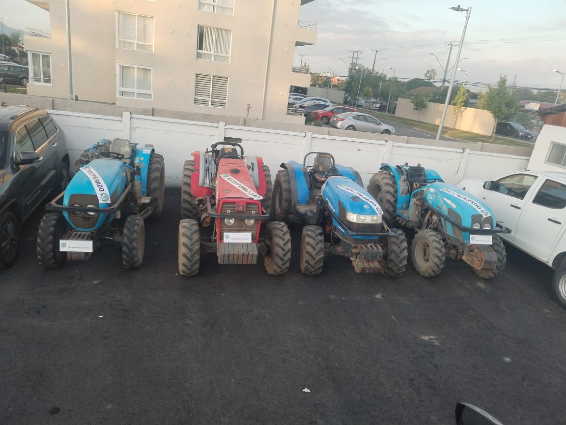 El procedimiento policial tuvo lugar en el sector Carmen Bajo de la comuna de Codegua y en él carabineros recuperó dos tractores que habían sido robados en noviembre del año pasado en la comuna de Peralillo, uno en la comuna de La Estrella, en la provincia de Cardenal Caro y el cuarto en la comuna de Buin, región Metropolitana.