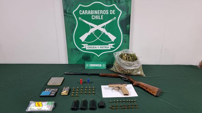 Diligencias efectuadas por el OS-7 de la Prefectura de Carabineros Cachapoal, permitieron en las últimas horas detener en la comuna de Graneros a un sujeto que, al momento de allanar su vivienda, se le incautó droga como también armamento, municiones de diverso calibre y otros elementos asociados al delito.