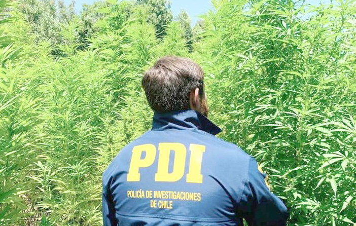 Debido a lo anterior, personal de la PDI se trasladó hasta el lugar, donde comprobaron la existencia de un cultivo con más de 300 plantas de cannabis en etapa de crecimiento, cada una con una altura aproximada de un metro, especímenes con el potencial de producir cannabis procesada avaluada en 150 millones de pesos.