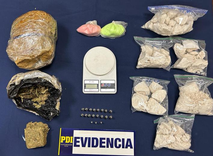 Conforme a lo informado por la PDI, durante el procedimiento fueron incautados 3,5 kilos de cocaína base y 1,3 kilos de cannabis procesada, droga avaluada en 77,5 millones de pesos.