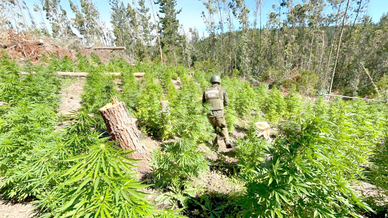 Esta nueva incautación se enmarca en el “Plan Cannabis 2023-2024” el cual Carabineros realiza en la zona con la finalidad de erradicar los cultivos de marihuana y detener a los responsables de las plantaciones.