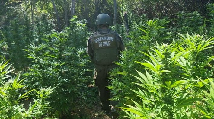 Se trata de 247 plantas de cannabis sativa, algunas en proceso de crecimiento y otras que alcanzaban una altura de casi dos metros. En el procedimiento carabineros detuvo a un hombre de 37 años de edad por el delito de infracción al artículo 8 de la Ley de Drogas 20.000, al que además se le incautó un rifle de aire comprimido y un teléfono celular.