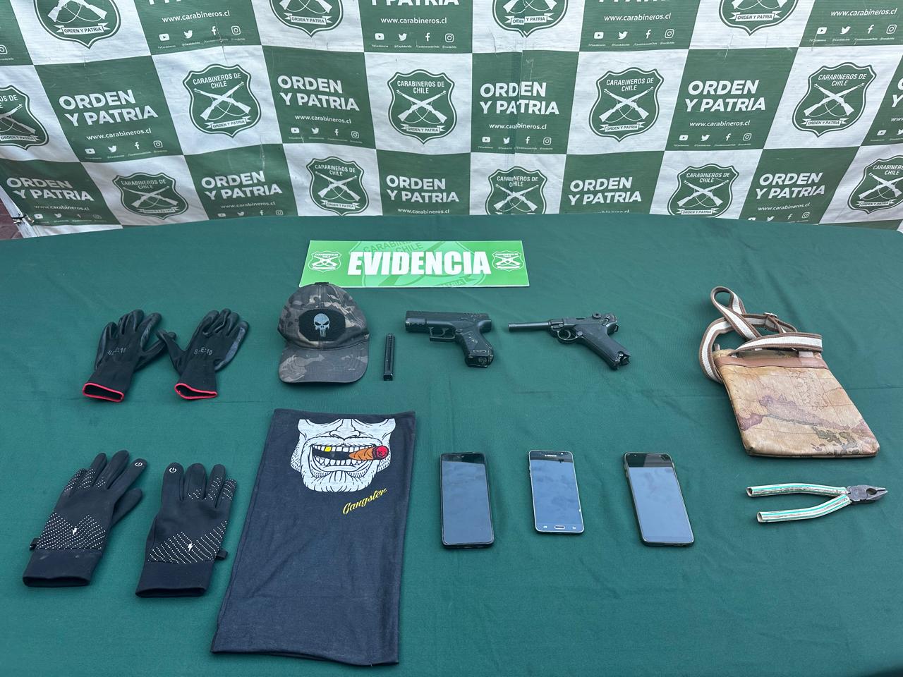 Los imputados fueron identificados como M.P.R. de 18 años, sin antecedentes policiales; y, B.G.C. de 20 con antecedentes policiales, nada vigente. Ambos chilenos. Al mismo tiempo se recuperaron dos armas, que serían de aire comprimido.