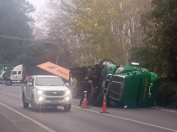 Dos camiones de alto tonelaje colisionaron frontalmente en la Carretera de la Fruta, a la altura de la comuna de Peumo, salvando providencialmente con lesiones menores los conductores.