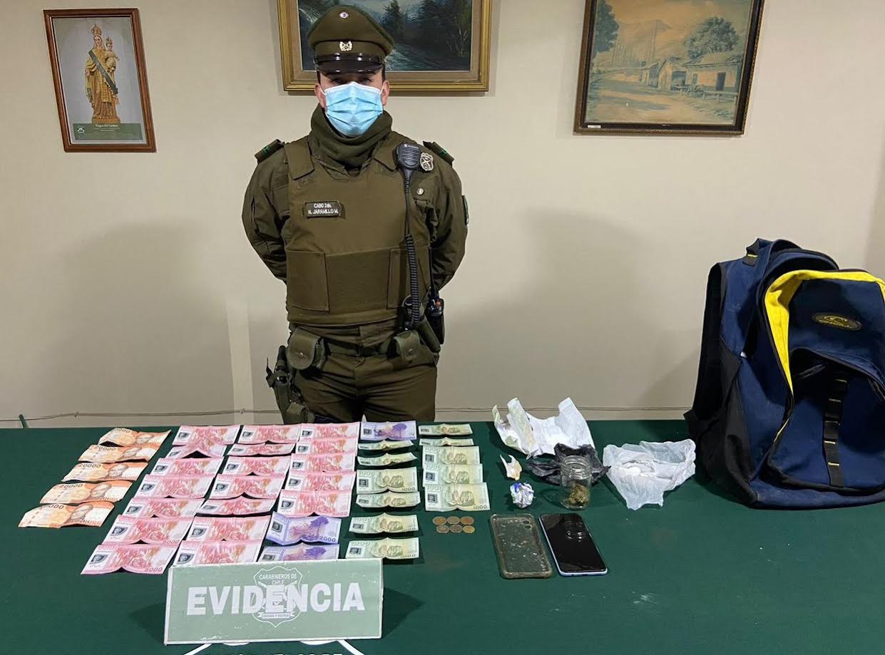 Patrullajes preventivos y el rápido actuar de carabineros de la Tenencia de Chépica, permitió la detención de una persona por microtráfico y la incautación de droga y dinero en efectivo.