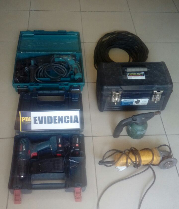El imputado al enterarse que la PDI lo estaba buscando, decidió presentarse voluntariamente en el cuartel policial haciendo entrega de las herramientas de trabajo avaluadas en más de 500 mil pesos, siendo detenido en forma flagrante por el delito de receptación.