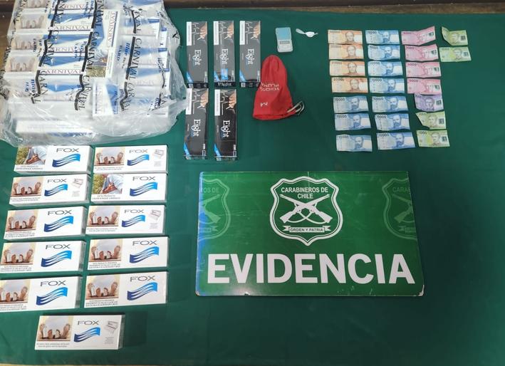 Tras la detención, al conductor se le realizó el examen intoximeter arrojando 1.5 G/L en la sangre. Así mismo se realizó un registro al vehículo encontrando una bolsa de género cuyo interior mantenía un envoltorio transparente de nylon contenedor de una sustancia polvorienta de color blanca, la suma de $206.000 mil pesos dinero en efectivo más una pesa digital. En el maletero del auto además se encontraron 590 cajetillas de cigarrillos de diferentes marcas tipo americanos, siendo incautadas.