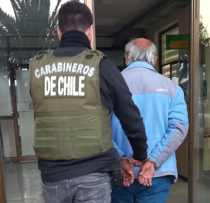 El detenido fue identificado como O.A.V.M., de 63 años de edad, chileno, con 2 antecedentes penales y 2 antecedentes policiales. Por instrucción del fiscal de turno, el imputado pasó a control de detención durante la jornada de ayer en el Tribunal de Garantía de la capital regional.