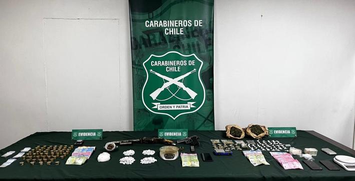 Con apoyo del GOPE de Rancagua, Chillán, Talca y Santiago allanaron siete domicilios, incautando droga, armamento, diferentes utensilios para la venta y un vehículo.