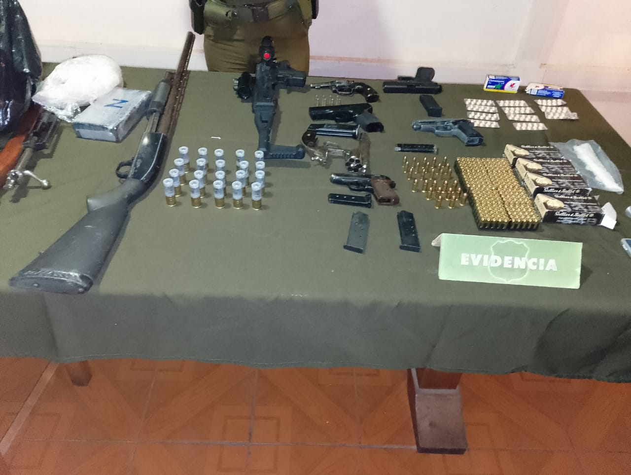 Al momento de ser fiscalizados y al efectuar una revisión minuciosa al vehículo en que se desplazaban los sujetos, carabineros encontró en su interior cuatro pistolas, dos revólveres, una escopeta y una carabina, como también municiones de diverso calibre.