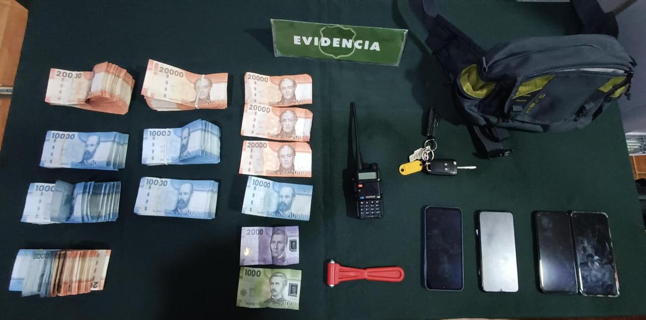 Al percatarse la víctima de esta situación, se comunicó inmediatamente con Carabineros, activando el procedimiento, que concluyó en el km. 100 de la Ruta 5- Sur donde se logró detener a los individuos, que se trasladaban en un vehículo sin encargo.