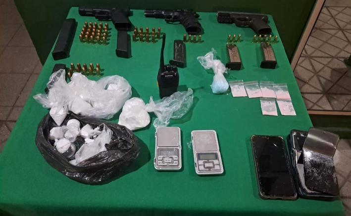 Durante el ingreso al domicilio también se encontró armamento, el cual fue recuperado. Entre ellos se encuentra una pistola sin inscripción; otra arma similar, que mantiene encargo vigente por robo en lugar no habitado y una tercera pistola, que mantiene encargo vigente por robo a una armería en la comuna de Rancagua.